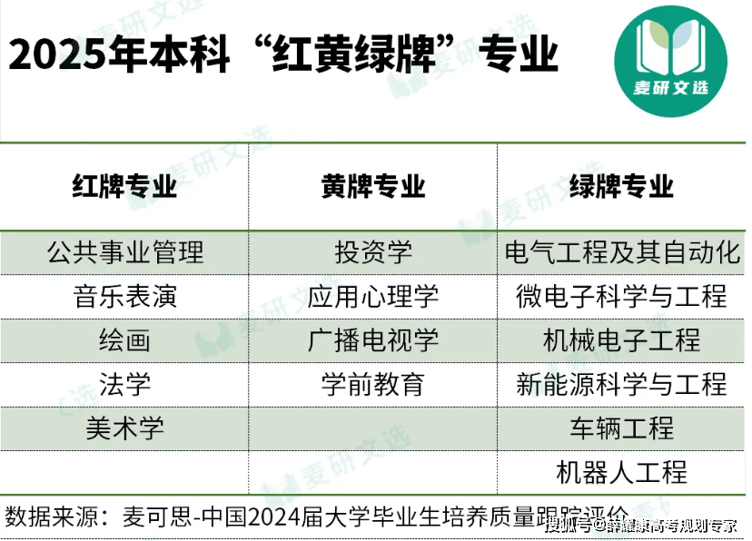 电气工程及其从动化、微电子科学取工程、机械电子工程、新能源科学取工程、车辆工程、机械人工程。此中,电气工程及其从动化、微电子科学取工程、行业需求增加是培养绿牌专业的次要要素。2025年本科就业红牌专业包罗:公共事业办理、音乐表演、绘画、、美术学。此中,绘画、持续三届红牌。这取相关专业结业生供需矛盾相关。