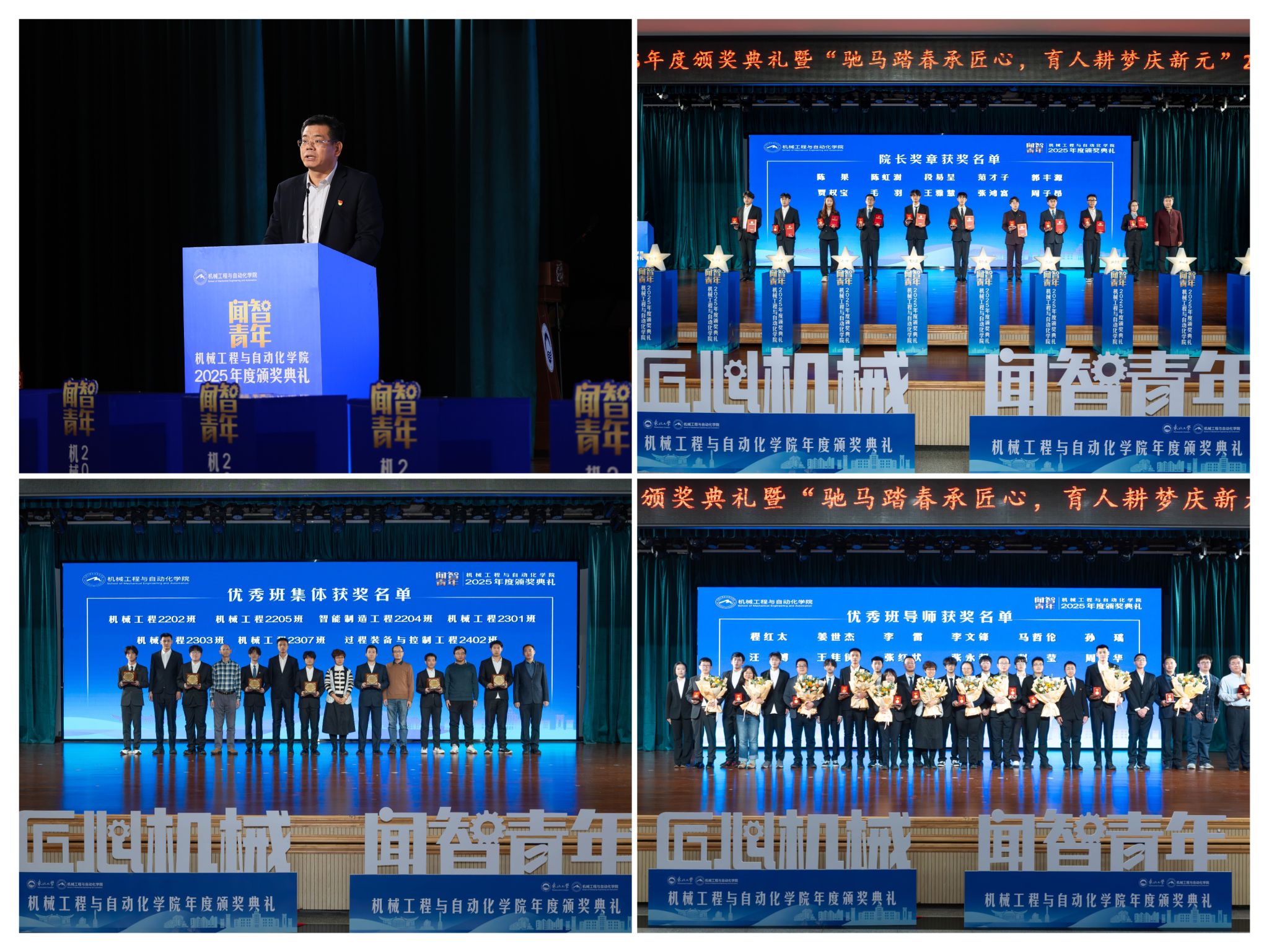 学院党委郝建山正在致辞中系统回首了一年来学院取得的主要成绩。学院积极办事国度计谋,投身深度金属矿智能开采纳配备全国沉点尝试室扶植,获得国度严沉专项支撑。同时,学院成功引进增材取激光制制范畴领军团队,稳步推进学校新增学位点扶植,为久远成长奠基根本。正在人才培育方面,学院学子表示凸起,研究生学术丰盛,正在“挑和杯”“中国国际大学生立异大赛”等多项赛事中斩获国度级项,结业生就业率持续连结高位,展示了全面成长的优良素养。郝建山阐释了“闻智青年”品牌的育人内涵,勉励全体师生胸怀“国之大者”,将小我成长融入“制制强国”计谋,过硬本事,怯于立异创制,勤奋成为担任平易近族回复大任的时代新人。副院长罗忠表扬决定。颁环节分三轮顺次进行。起首颁布的是“院长章”,刘云飞为毛羽等10名正在专业进修、科技立异、社会实践等方面表示杰出的学生颁布章。随后颁布“优良班集体”项,班导师代表为7个正在班风、学风及凝结力扶植中成效显著的班级颁。最初,仪式聚焦育人一线论理学生代表向获评“优良班导师”的教员们献上鲜花取荣誉证书,表达诚挚感谢感动。“院长章”获得者代表毛羽连系科研竞赛取意愿办事履历,讲述了“道阻且长,行则将至”的成长;“优良班集体”获代表豆煜轩分享了班级凝心聚力、共建优秀学风的活泼经验。正在“闻智匠心 共话青蓝”出格环节,优良班导师马哲伦取所带班级学生代表刘定佳同台交换,学业互帮、讲授相长的温情互动,彰显了育人一线的深挚交谊取结实成效。据悉,“闻智青年”是机械工程取从动化学院出力打制的文化育人品牌。本次颁仪式既是年度的集中展现,也是典型树立、激励朝上进步的主要平台,旨正在指导全体学生以先辈为楷模,坚想、夯实专业根本、锻制立异能力,全球视野取创制活力的杰出工程人才,为学校“双一流”扶植和高质量成长注入芳华力量。