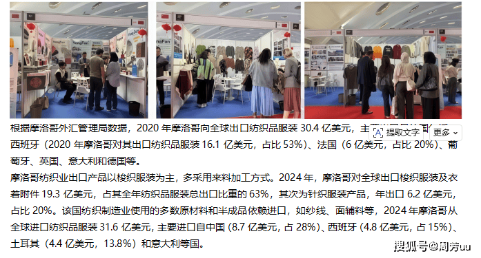 2。 摩洛哥财产规模取增加潜力摩洛哥纺织手艺以快时髦定位和近岸外包计谋为焦点合作力,近年来通过出口多元化和绿色转型应对挑和,全体手艺实力正在非洲地域处于领先地位。